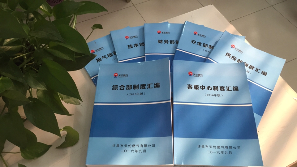 為了規(guī)范日常管理行為,加強(qiáng)制度執(zhí)行力度,做到有章可循有制可依。2016年5月下旬,許昌公司發(fā)起了制度大疏理活動(dòng),各部門對內(nèi)部日常執(zhí)行制度、操作流程、規(guī)范、細(xì)則等進(jìn)行了整理、細(xì)化、修訂,并按照統(tǒng)一的排版、排序等要求進(jìn)行了匯總歸集,通過數(shù)月對各部門制度內(nèi)容的規(guī)范、整理、核準(zhǔn);多次反復(fù)修訂精簡,形成了以部門為單位的制度匯編手冊,并設(shè)計(jì)了精美的封面,于2016年9月19日正式下發(fā)至各部門。