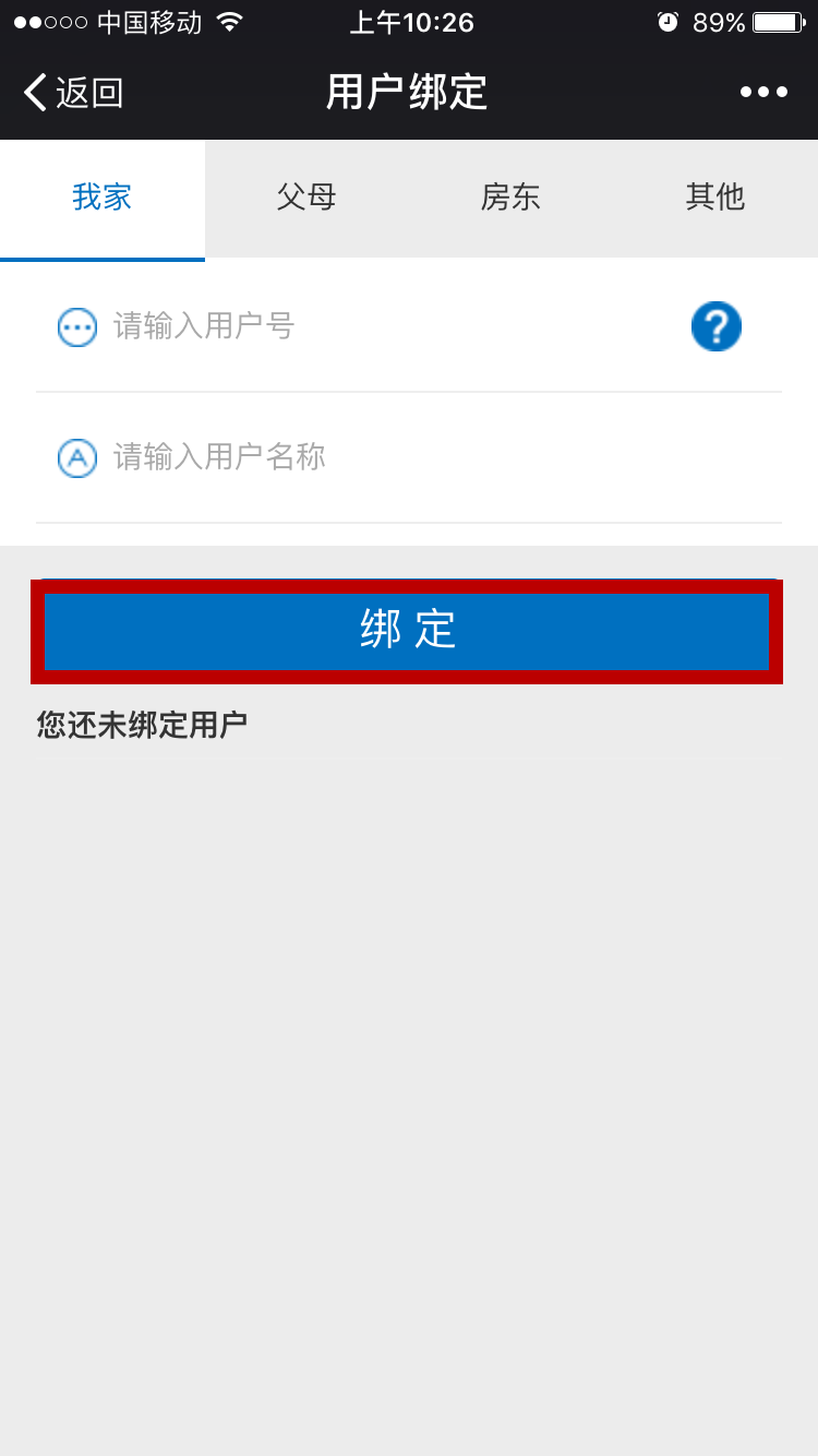 第三步輸入需要綁定的用戶姓名及戶號(hào)→點(diǎn)擊綁定