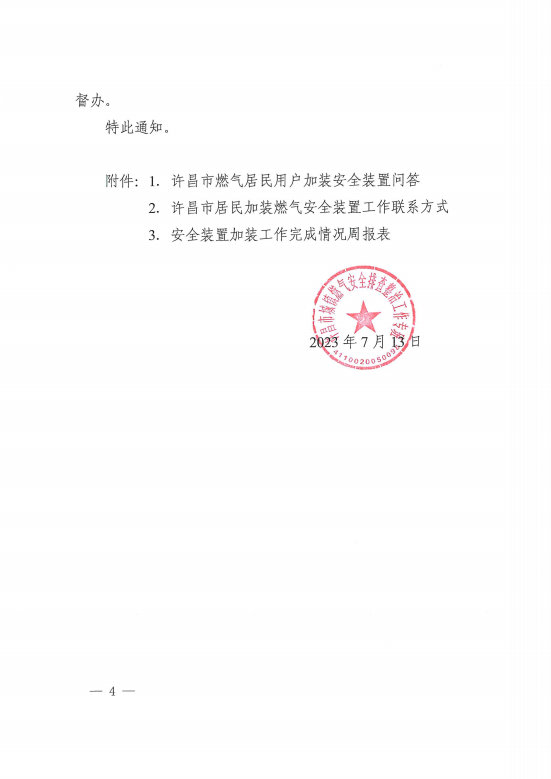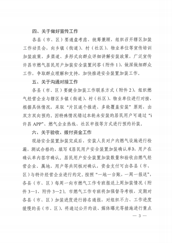 關(guān)于加快推進(jìn)燃?xì)獍踩b置加裝工作的通知 許燃專班〔2023〕10號